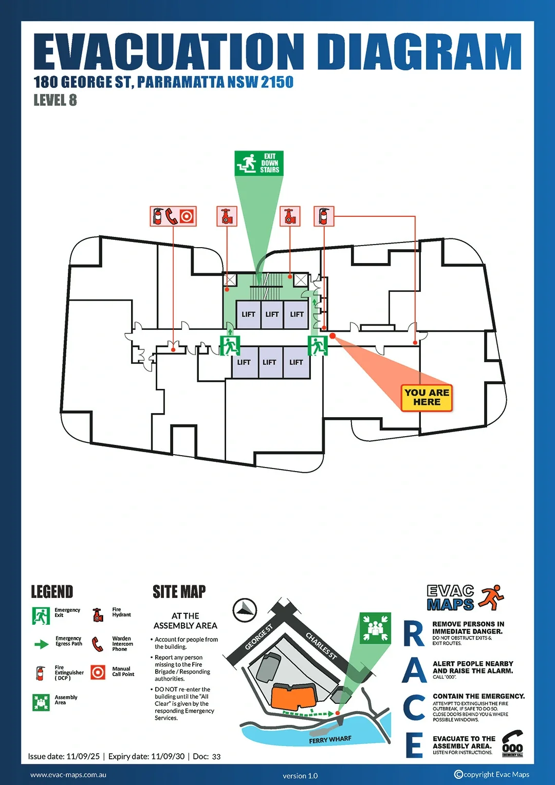 The evacuation diagram requirement in Victoria is more than just a legal obligation; it’s a cornerstone of workplace safety. Victorian regulations state that evacuation diagrams must be displayed in visible and accessible locations across all facilities. These diagrams provide critical details, including exit routes, assembly points, firefighting equipment, and emergency procedures. Without them, building occupants may be left vulnerable in an emergency, and businesses face penalties, legal exposure, and reputational damage.